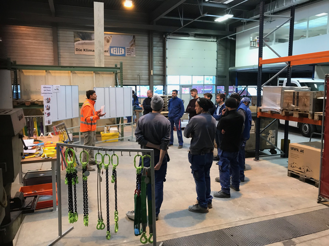 Die Sicherheitsschulung wurde fachmännisch von Herrn C. Barletta von der Firma ASUGS in Kooperation mit Herrn P. Würth von der Firma Würth Innovation AG durchgeführt. Je zwei Gruppen wurden abwechselnd jeweils morgens sowie nachmittags geschult. Wir haben mit dem aktuellen Stand der Sicherheitsvorschriften Bekanntschaft machen dürfen und viele neue Dinge dazugelernt. In Bezug auf Befestigungsmaterial waren wir sehr erstaunt, welche Befestigungsmöglichkeiten heutzutage erlaubt sind, resp. für welche man sogar gebüsst werden kann, wenn diese nicht korrekt angewendet werden!
